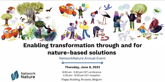 When 8 June 2023 9:00 – 20:00 CEST Location Flagey Building, Brussels Address Place Sainte-Croix, 1050 Bruxelles Enabling transformation through and for nature-based solutions Join NetworkNature Annual Event “Enabling transformation through and for nature-based solutions” on 8 June 2023! The event is open to the public and will feature interviews, presentations, panel debates and interactive…