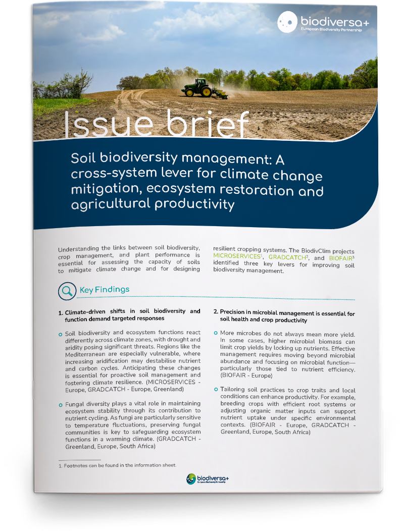 Biodiversa+ has released a new series of three Issue Briefs from the BiodivClim programme, showing how biodiversity can make Europe’s soils, forests, and landscapes more resilient to climate change.