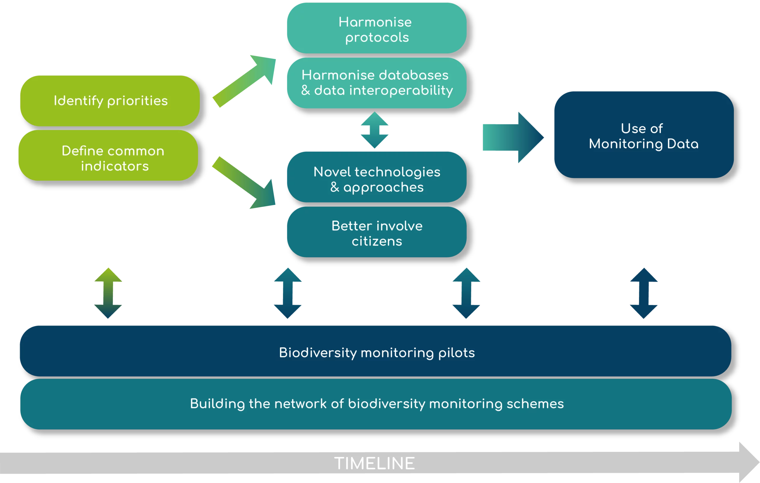 To reach this goal, Biodiversa+ joins forces with EuropaBON, our key collaborator, and other key bodies (EEA, GBIF, JRC) in delineating a strategic framework that defines a common vision (end-goal) for biodiversity monitoring across Europe, as well as the major steps, collaborations and governance options to reach it.